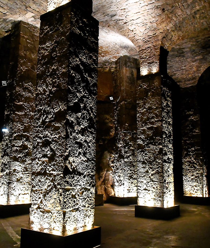 Une fois passée l’entrée, on plonge très vite dans ces immenses caves qui cheminent, à des dizaines de mètres sous terre, presque fidèlement en parallèle à la rue principale de Roquefort-sur-Soulzon (le nom complet du village). "Ces caves font trois fois la surface du village", fait remarquer Laurence Guibbal, qui précise qu’elles ont été aménagées "dès le Moyen-Âge".