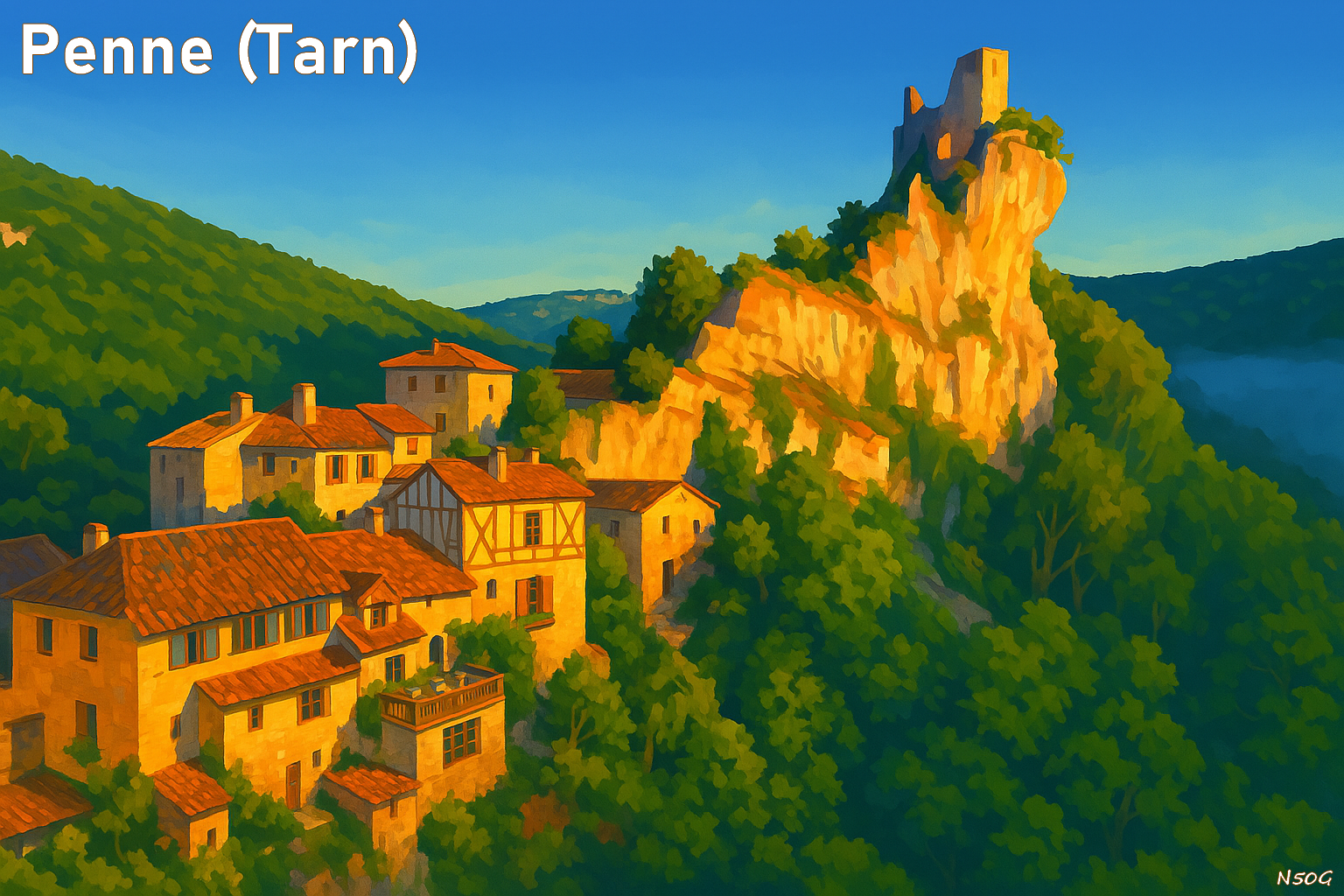 Perchée sur un éperon rocheux dominant les gorges de l’Aveyron, Penne est l’un des villages les plus spectaculaires du Tarn.