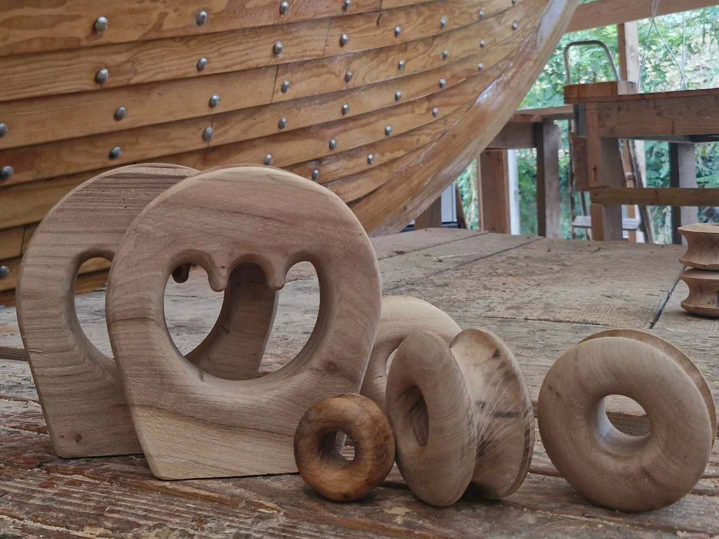 « Actuellement, nous sommes en train de poser la troisième planche de bordé qui forme la coque après avoir terminé la quille, l’étambot à l’arrière et l’étrave à l’avant. Ce sont les deux pièces recourbées qui remontent », explique le capitaine Thomas Devineaux, président de l’association Orkan.