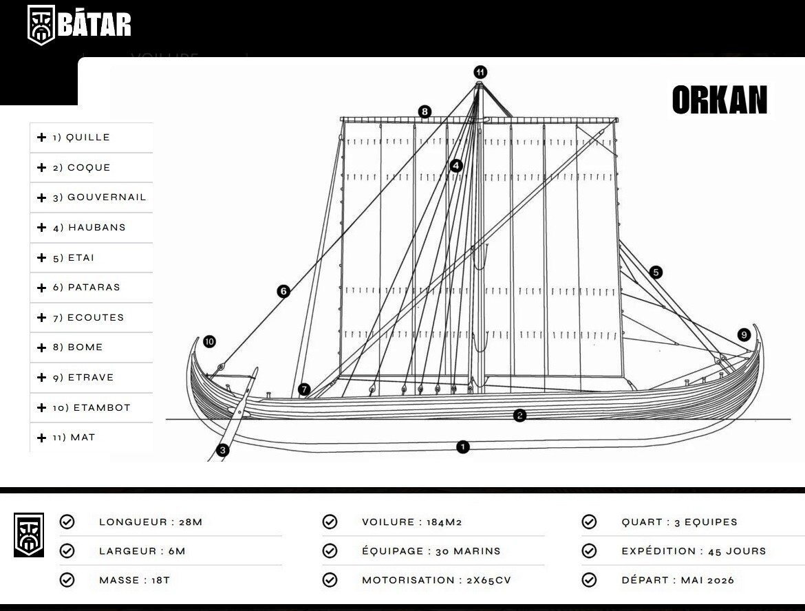 Avec ce nouveau bateau, le ORKAN (ouragan en islandais), 28 mètres de long pour 6 mètres de large, l’équipe met le cap sur l’Atlantique avec un Toulouse-New York prévu au printemps 2024. Au total, un mois et demi de navigation en remontant vers le nord, en comptant des escales dans plusieurs pays (Islande, Îles Féroé, Canada) "sur la route des premiers Vikings" précise Arnaud, alias Bjorn et membre des BÁTAR.
