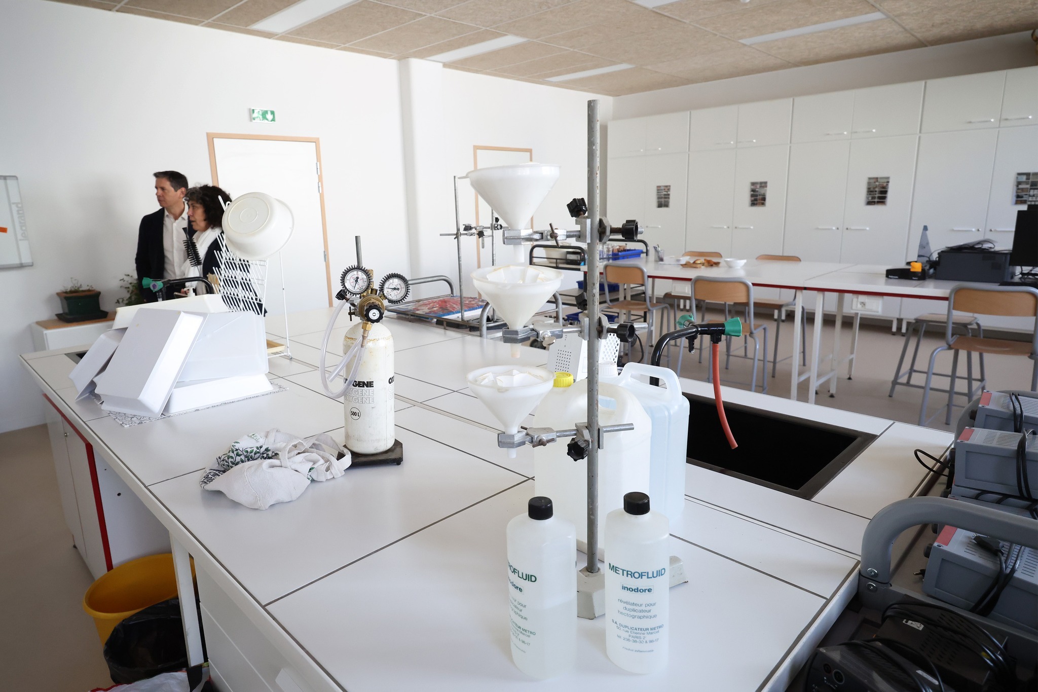 Couplé à une isolation renforcée, l’ensemble permettra de rafraîchir le collège durant les périodes chaudes. Côté sciences, une salle de préparation a été agrandie et communique avec les salles de cours où les paillasses ont été recyclées.