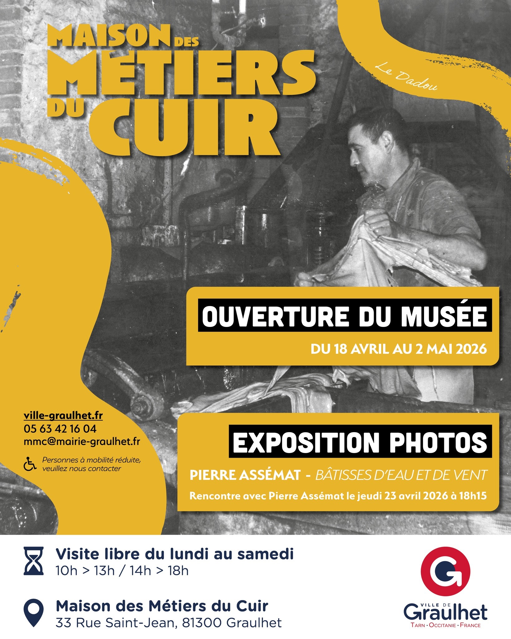 Jusqu’au 2 mai la Maison des Métiers du Cuir accueille à nouveau le public pour une plongée dans l’histoire industrielle de la ville. Installé dans une ancienne usine en bordure du Dadou, ce lieu emblématique met en lumière l’identité ouvrière qui a façonné Graulhet.
