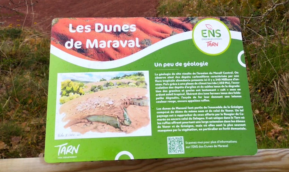 Étonnantes par leurs couleurs rouges, presque cachées au milieu des bois... les dunes de Maraval forment un paysage unique et atypique au cœur du département et idéal pour une randonnée.
